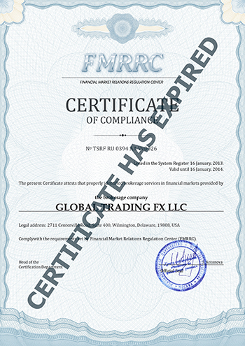 GLOBAL TRADING FX LLC company Certificate of compliance
