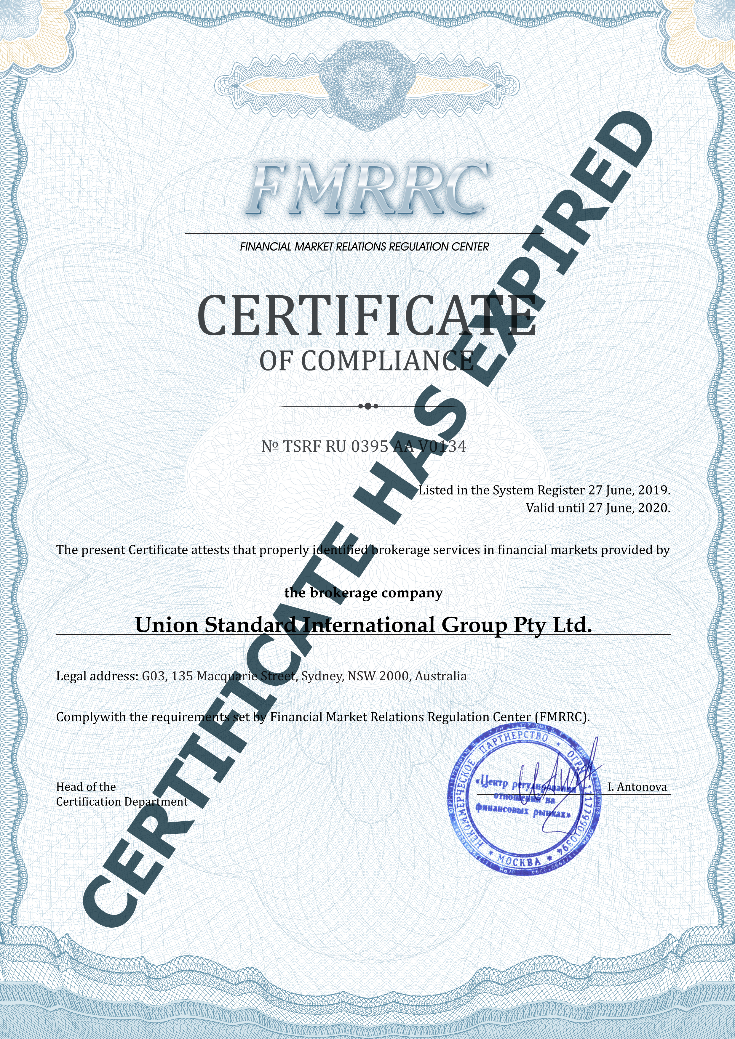 Union Standard International Group Pty Ltd company Certificate of compliance